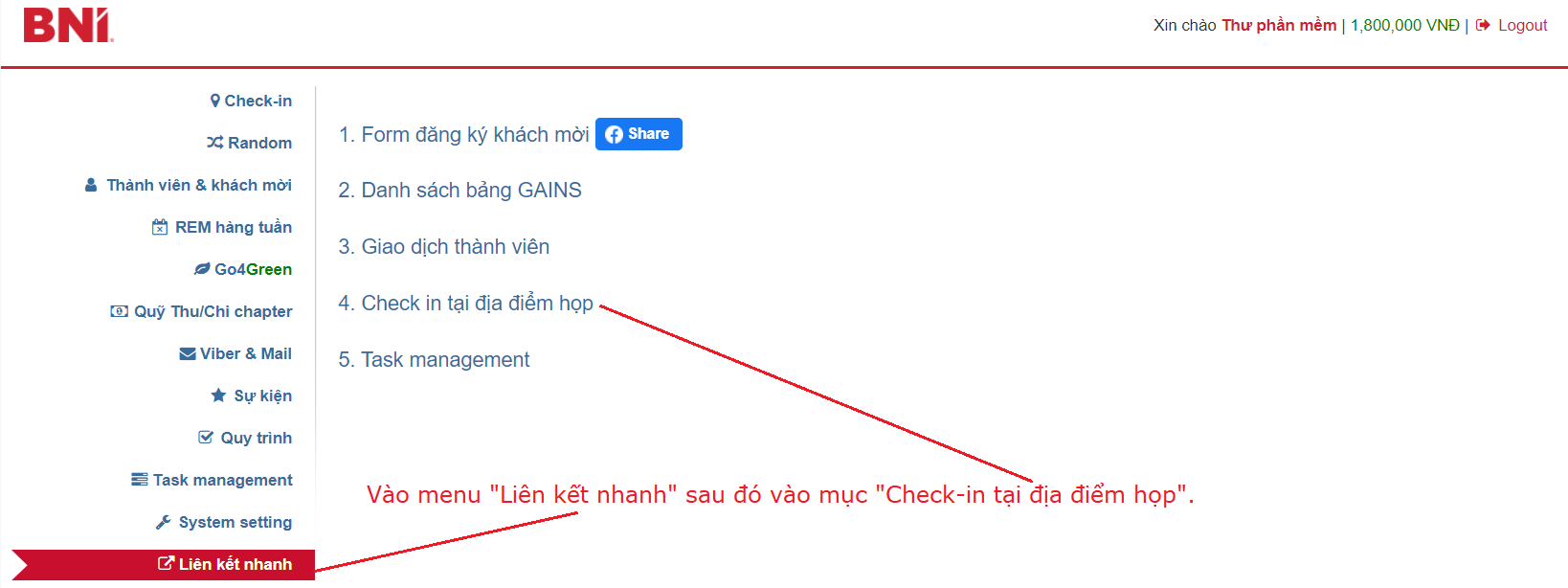 Thực hiện in mã QRCode từ phần “Liên kết nhanh”: