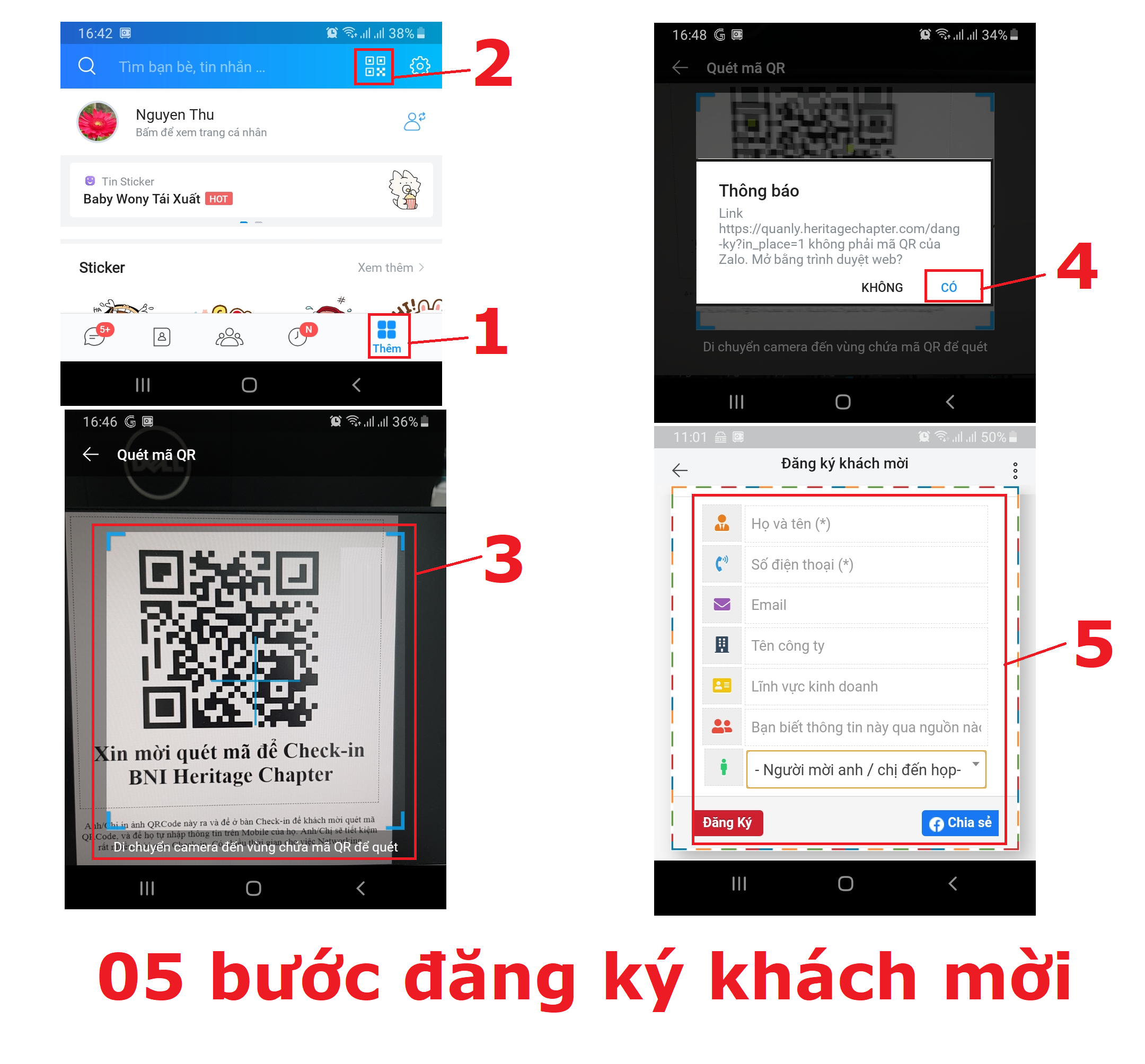 Tiếp theo, khách mời mở ứng dụng Zalo và thực hiện quét mã QRCode để Check-in