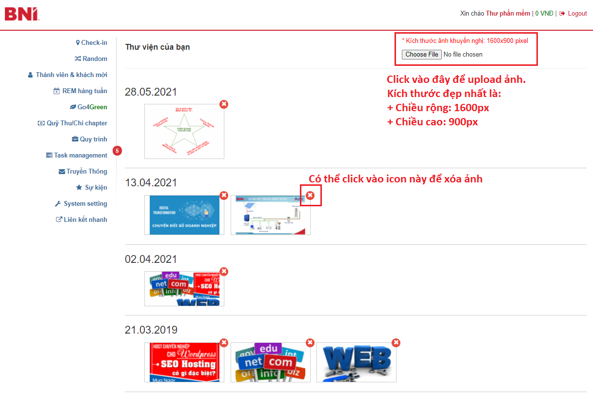 Bước 2: Upload ảnh hoặc xóa ảnh: