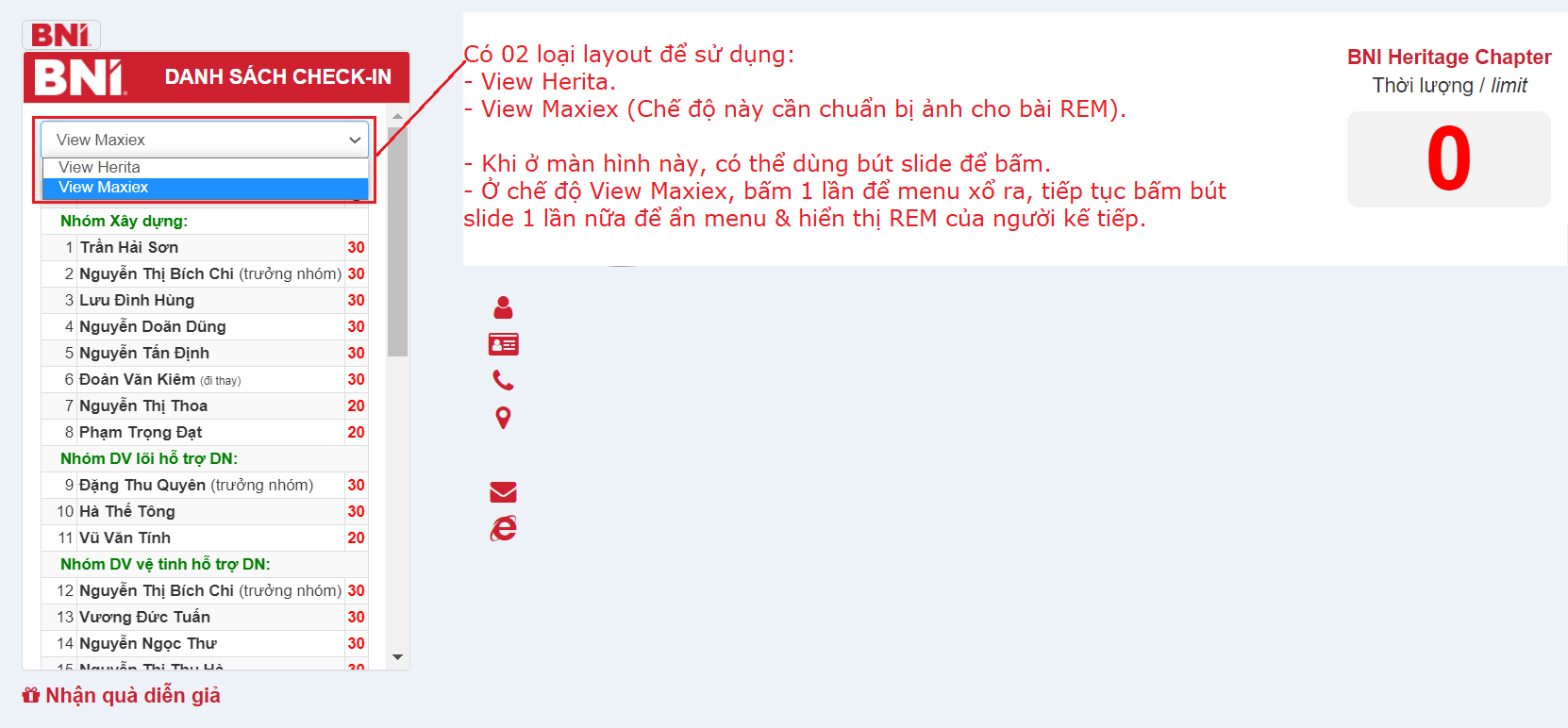 – Ở chế độ View Maxiex, bấm 1 lần để menu xổ ra, tiếp tục bấm bút slide 1 lần nữa để ẩn menu & hiển thị REM của người kế tiếp.